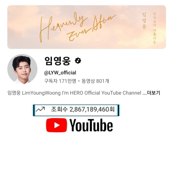 최근 임영웅의 공식 유튜브 채널인 '임영웅'(애칭 웅튜브)은 총조회수 28억 6천만 뷰를 돌파했다.