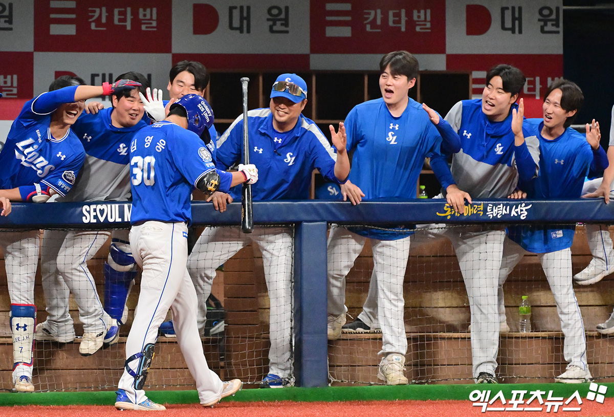 (엑스포츠뉴스 고척, 김한준 기자) 20일 오후 서울 구로구 고척스카이돔에서 열린 '2025 신한 SOL Bank KBO리그' 삼성 라이온즈와 키움 히어로즈의 경기, 9회초 1사 삼성 김영웅이 솔로 홈런을 날린 후 기뻐하고 있다.