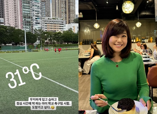 공개된 사진에는 아들이 축구 시합 중인 운동장의 모습이 담겨 있다. 강수정은 '31도'라고 덧붙이며 점점 더워지는 홍콩의 날씨를 전했다.