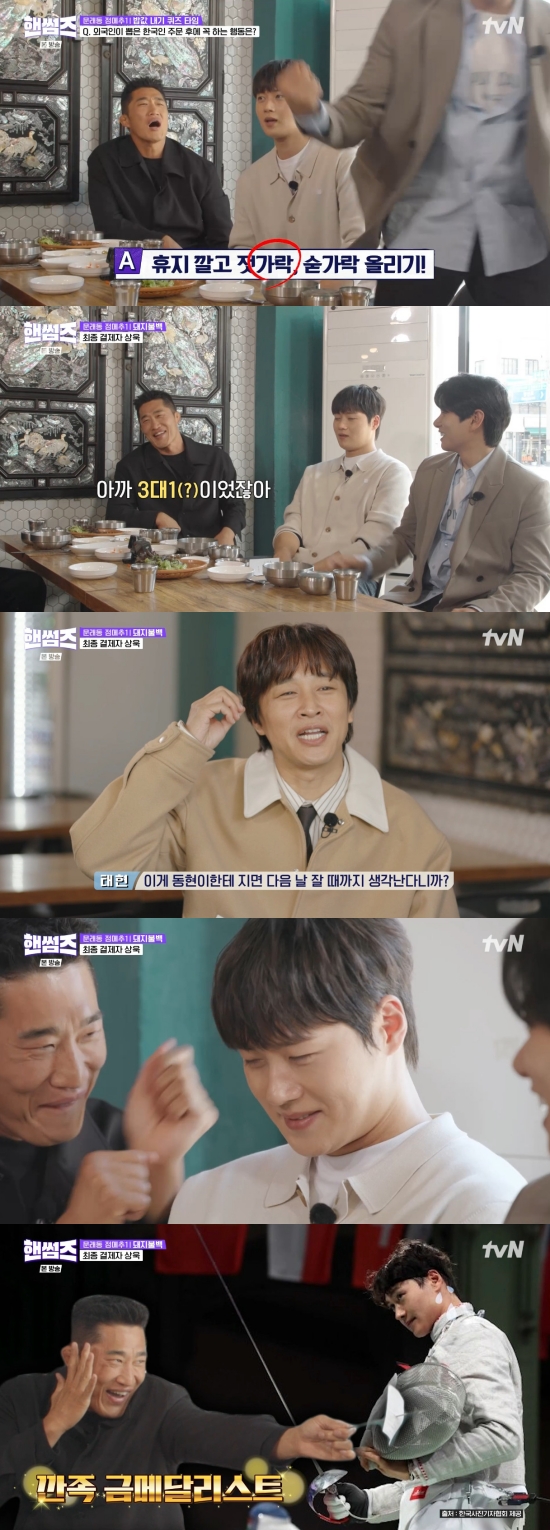 이후 김동현은 개인전에서 오상욱을 이겼고, "저는 1대1에 강하다"라며 자랑했다. 김동현은 오상욱을 놀렸고, 차태현은 "동현이한테 지면 다음날 잘 때까지 생각난다"라며 웃음을 터트렸다. 오상욱은 "이건 돈 문제가 아니야"라며 발끈했다.