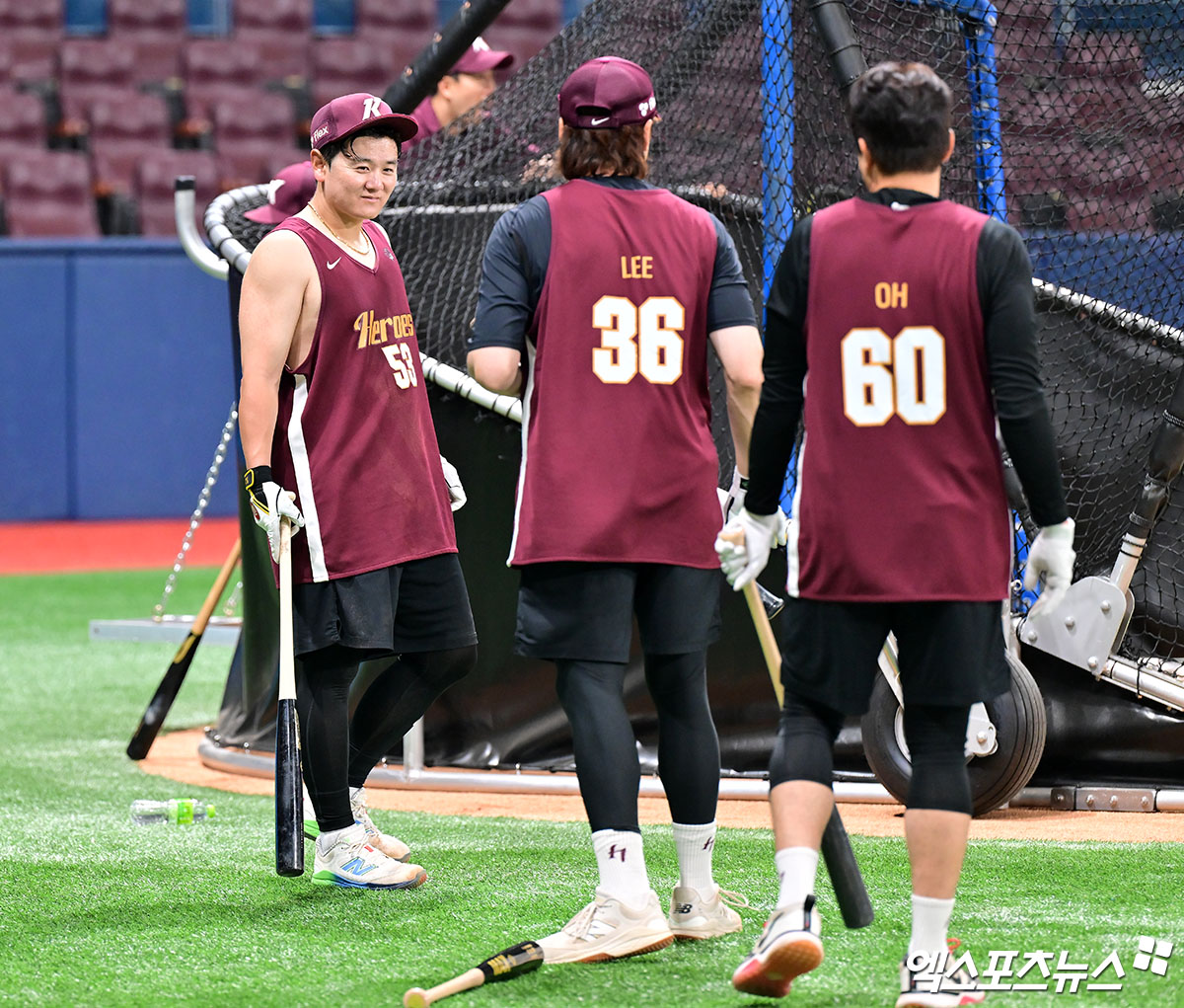 (엑스포츠뉴스 고척, 김한준 기자) 23일 오후 서울 구로구 고척스카이돔에서 열리는 '2025 신한 SOL Bank KBO리그' KT 위즈와 키움 히어로즈의 경기, 키움 최주환이 훈련에 임하고 있다.