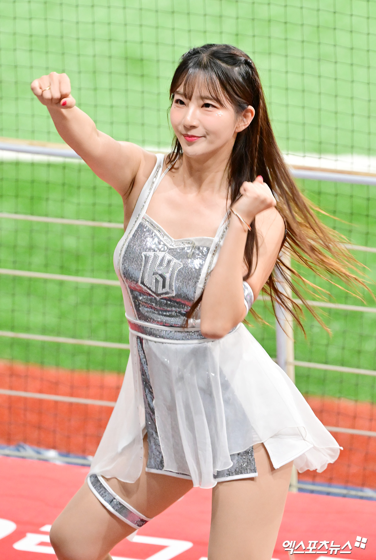 (엑스포츠뉴스 고척, 김한준 기자) 23일 오후 서울 구로구 고척스카이돔에서 열린 '2025 신한 SOL Bank KBO리그' KT 위즈와 키움 히어로즈의 경기, 김진아 치어리더가 멋진 공연을 선보이고 있다.