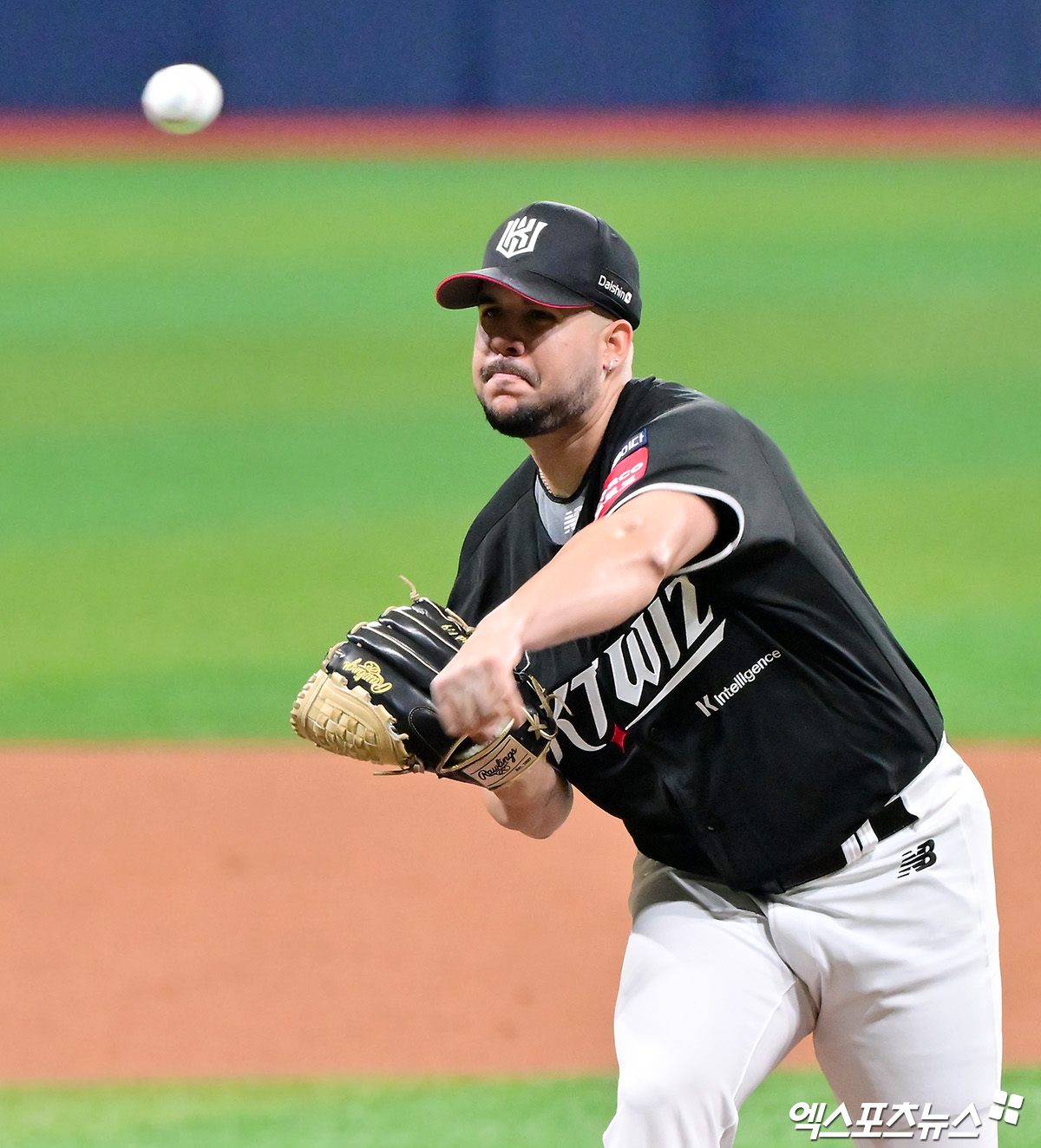 (엑스포츠뉴스 고척, 김한준 기자) 24일 오후 서울 구로구 고척스카이돔에서 열린 '2025 신한 SOL Bank KBO리그' KT 위즈와 키움 히어로즈의 경기, 1회말 KT 선발투수 헤이수스가 공을 힘차게 던지고 있다.
