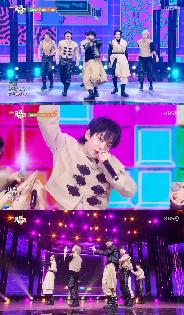 엘라스트는 지난 23일 오후 방송된 KBS 2TV '뮤직뱅크'에 출연해 다섯 번째 미니앨범 'Versus'(베르수스)의 타이틀곡 'CRAZY TRAIN'(크레이지 트래인) 무대를 음악방송 최초로 공개했다.