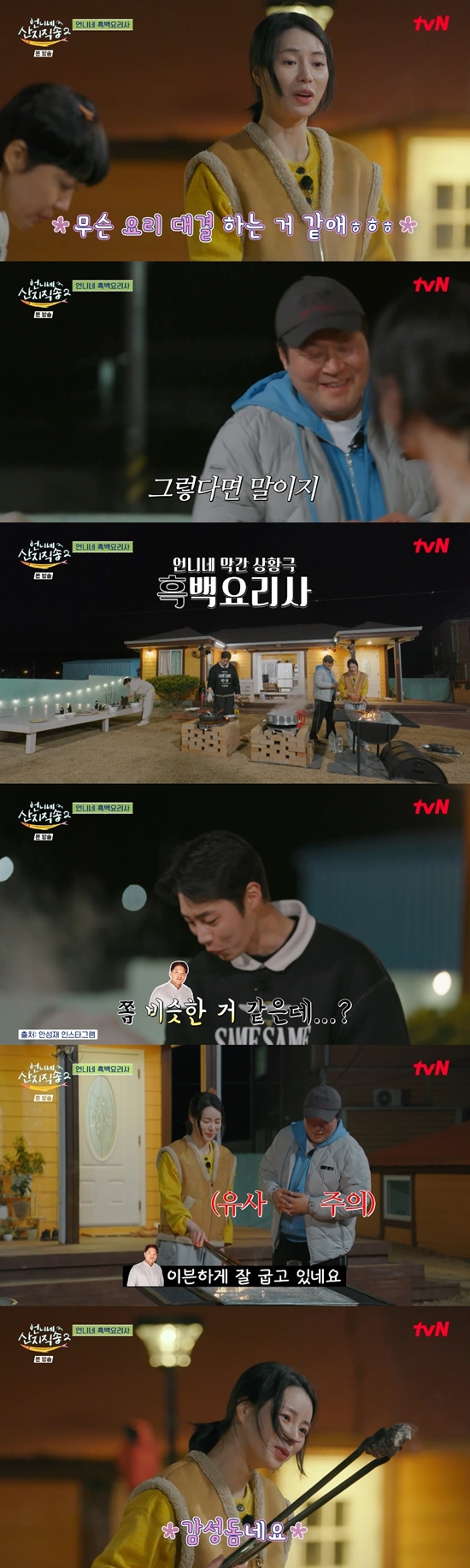 저녁 준비 중 임지연이 "(우리) 무슨 요리 대결하는 것 같다"고 말했다. 이에 윤경호가 "이건 뭔가요"라며 요리 프로그램 사회자처럼 나섰다.