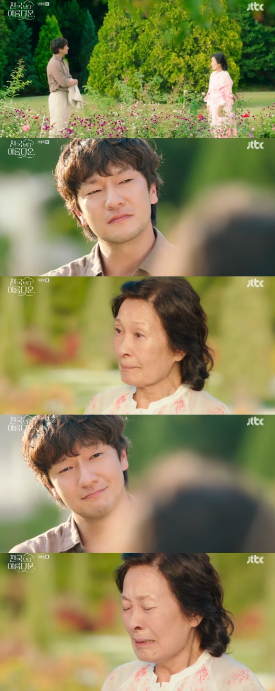 25일 방송된 JTBC 토일드라마 '천국보다 아름다운' 12회(최종회)에서는 고낙준(손석구 분)이 이해숙(김혜자)을 위해 환생을 포기한 모습이 그려졌다.