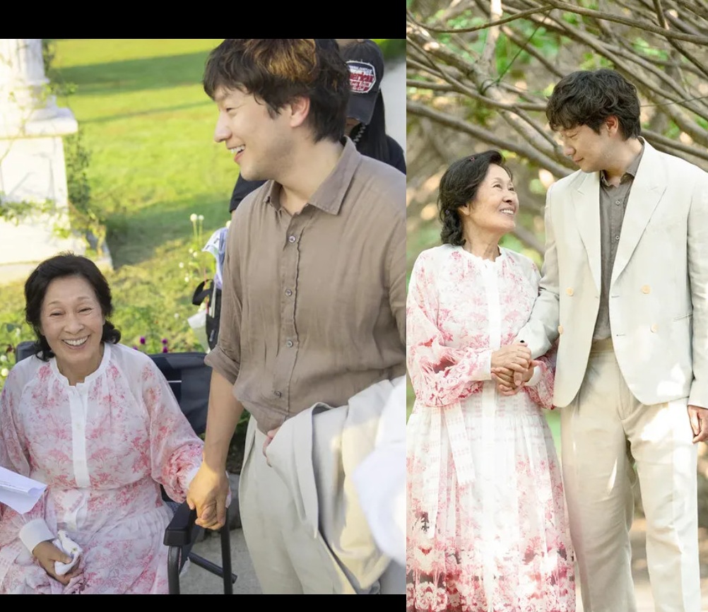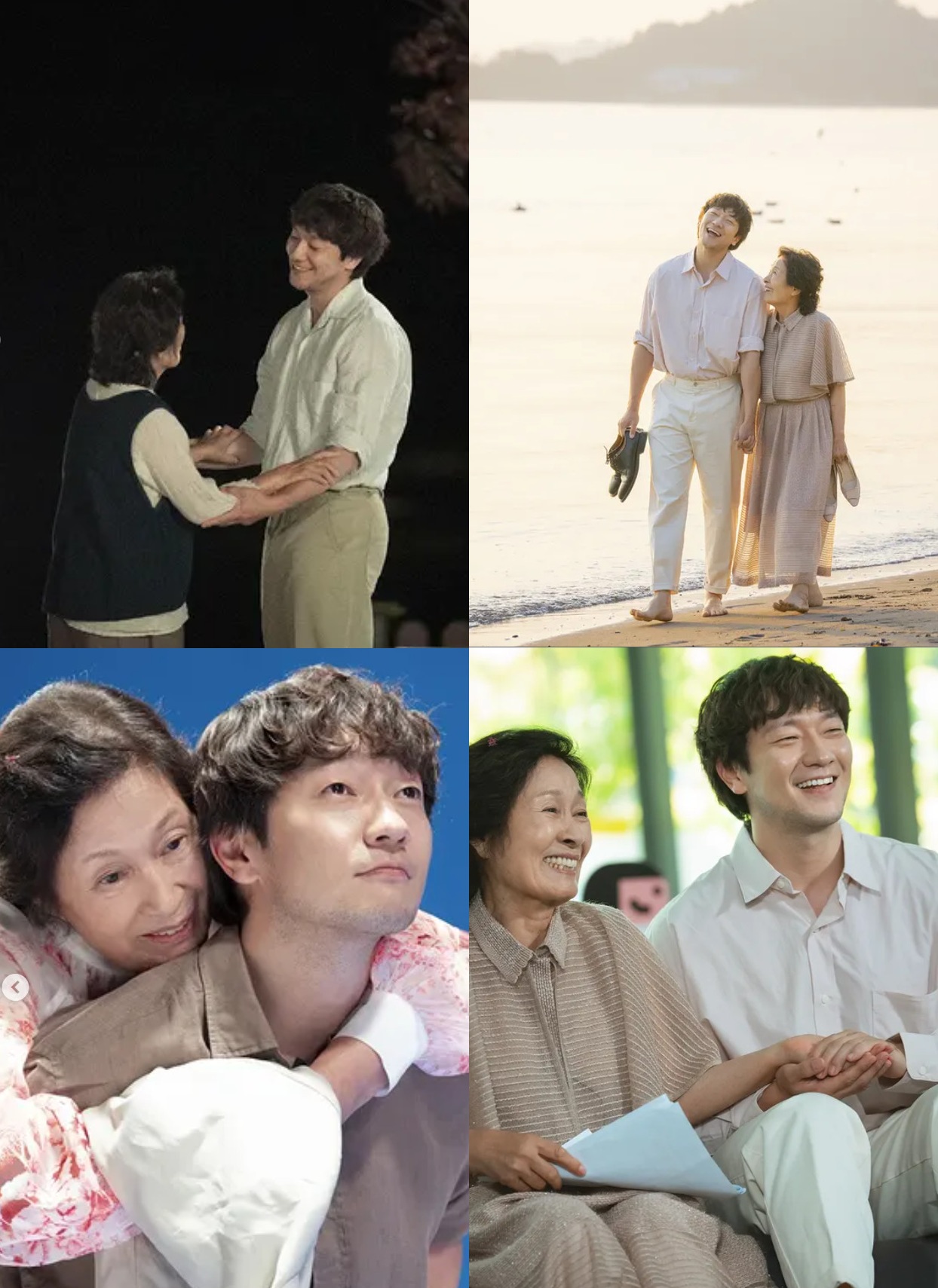 공개된 사진 속 손석구와 김혜자는 다정하게 손을 잡고 해변을 거니는가 하면, 서로를 마주보고 웃으며 부부 같은 면모를 보여 눈길을 끈다.