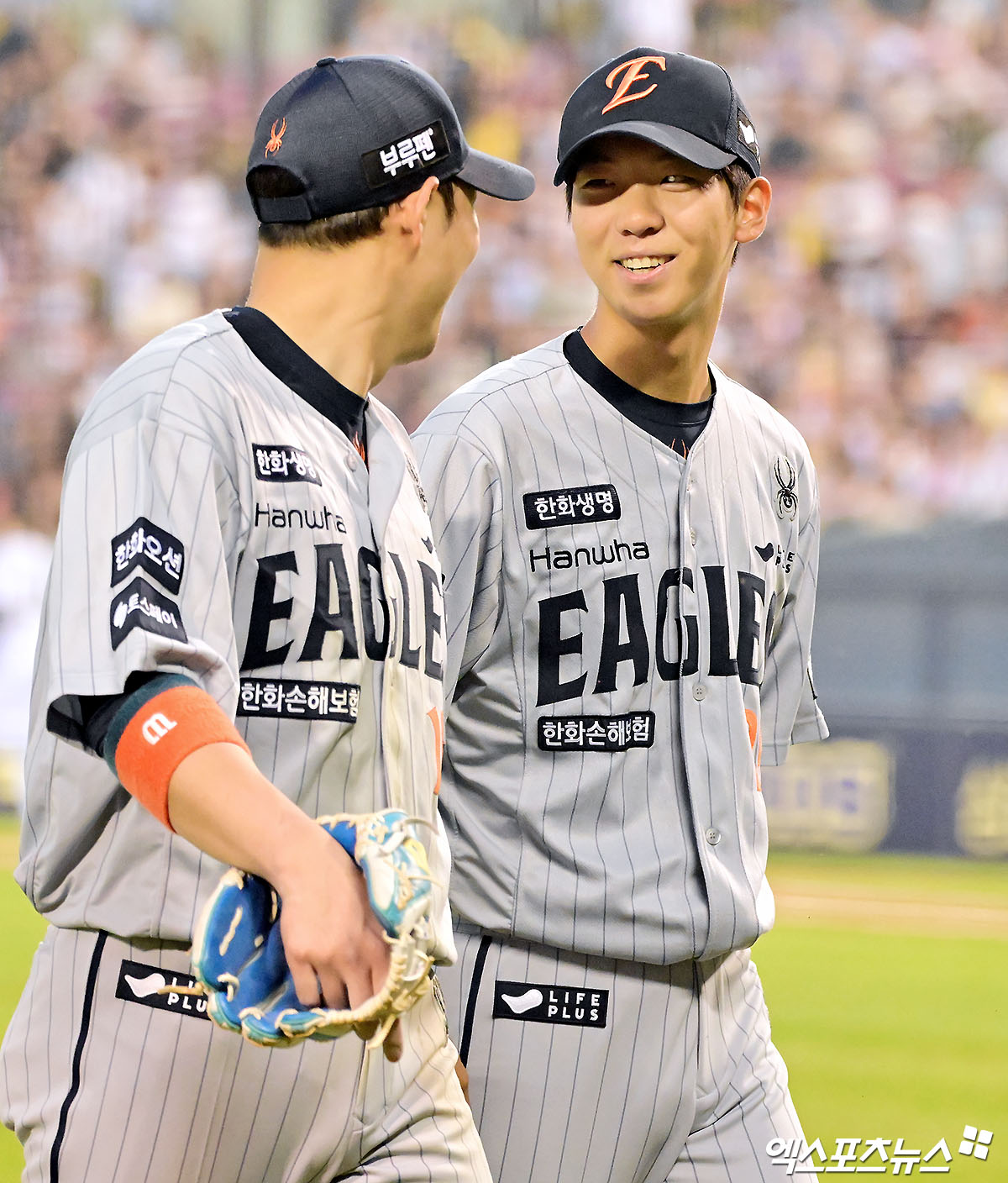 (엑스포츠뉴스 잠실, 김한준 기자) 27일 오후 서울 송파구 잠실야구장에서 열린 '2025 신한 SOL Bank KBO리그' 한화 이글스와 LG 트윈스의 경기, 5회말 수비를 마친 한화 황준서가 더그아웃으로 향하고 있다.