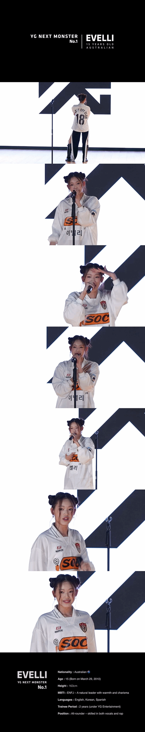 실제 매달 진행되는 월말평가를 가감 없이 담아낸 영상으로, 연습생들 가운데 처음 베일을 벗은 호주 출신의 이벨리는 Doechii의 'Nosebleeds'를 선곡하며 YG표 힙합 아이덴티티를 펼쳐냈다.