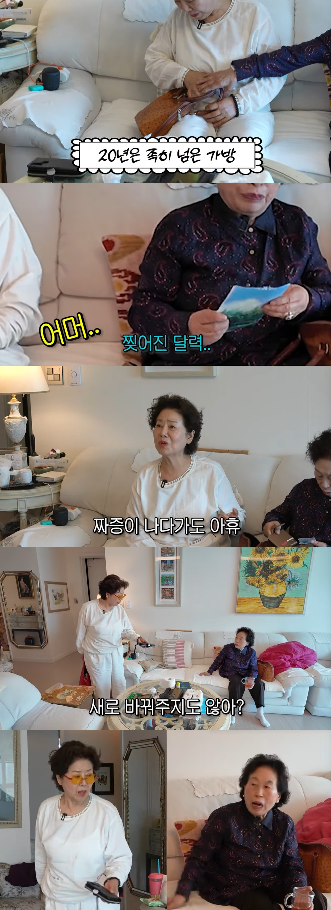 선우용여는 20년 된 전원주의 낡은 가방을 보며 "세상에 이 오래된 가방. 돈을 이고 지고 가냐"고 경악했다.