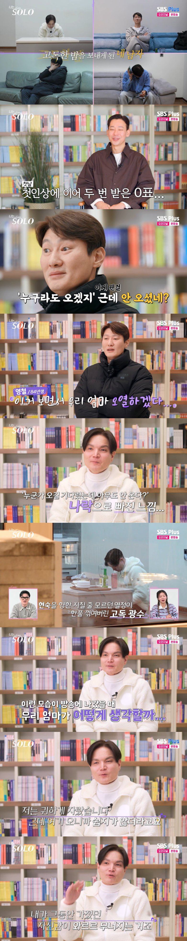 뜻대로 되지 않는 낯선 상황에 광수는 결국 눈물을 보였고, 뒤이어 "누군가를 기다렸는데 안 온 건 처음이다. 그래서 너무 색다르다. 0표를 받고 혼자 있고 그러니 그동안 가졌던 자신감이 와르르 무너졌다"라며 힘들어하는 모습을 보였다.