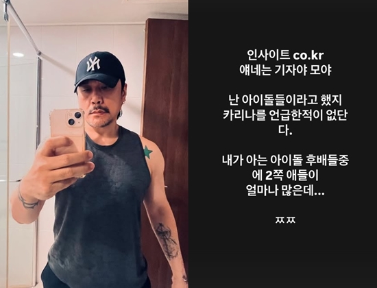 29일 JK김동욱이 자신의 개인 계정을 통해 "나는 아이돌들이라고 했지 카리나를 언급한 적이 없다. 내가 아는 아이돌 후배들 중에 2쪽 애들이 얼마나 많은데"라는 문구를 게재했다.