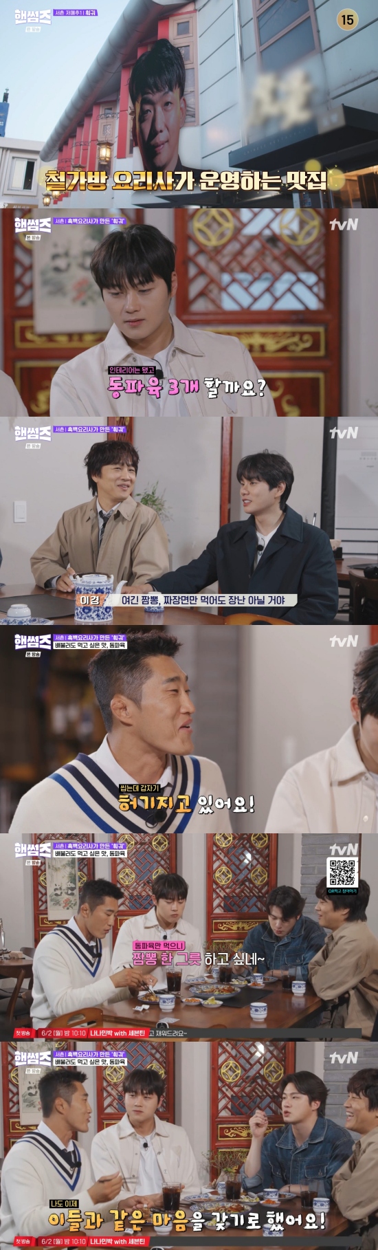 29일 방송된 tvN '핸썸가이즈'(이하 '핸썸즈')에서는 김동현, 신승호, 오상욱이 '흑백요리사'에 출연한 임태훈 셰프가 운영하는 중식당에 방문한 장면이 전파를 탔다.
