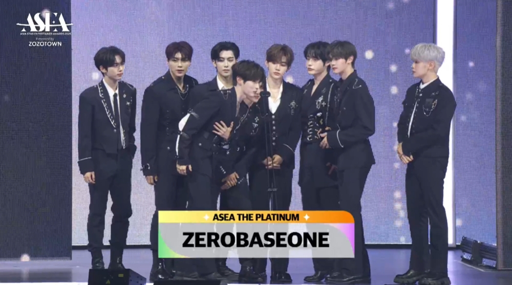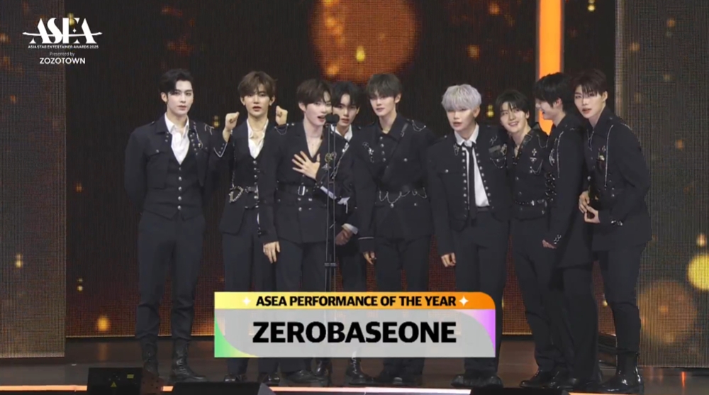 제로베이스원(성한빈, 김지웅, 장하오, 석매튜, 김태래, 리키, 김규빈, 박건욱, 한유진)은 지난 29일 일본 K아레나 요코하마에서 열린 'ASIA STAR ENTERTAINER AWARDS 2025'(이하 'ASEA 2025')에서 대상 격인 '퍼포먼스 오브 더 이어(PERFORMANCE OF THE YEAR)'와 본상 '더 플래티넘(THE PLATINUM)'을 수상했다.