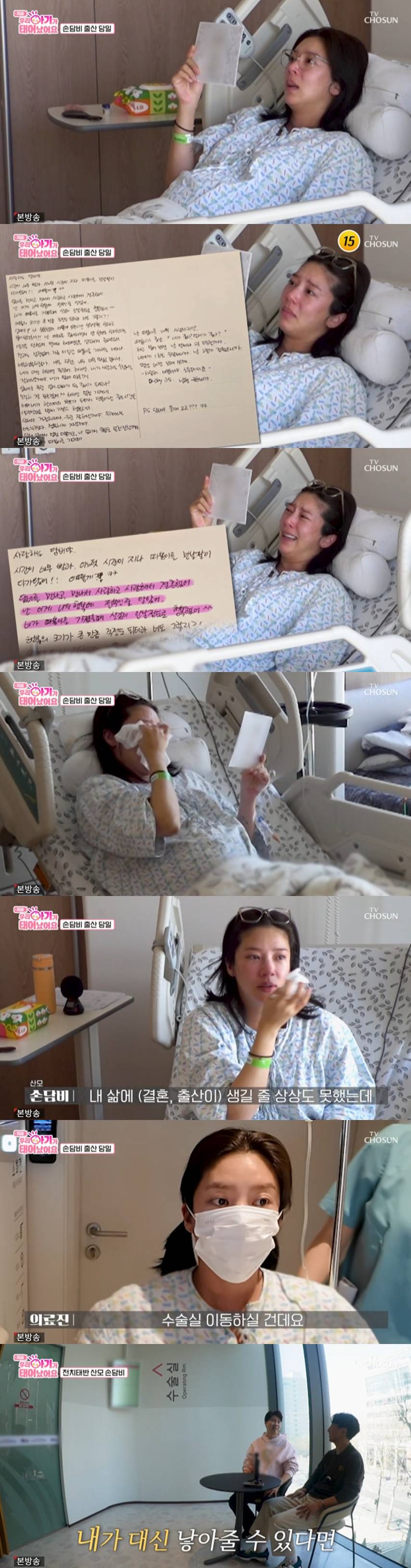 출산 당일, 이규혁은 재왕절개 수술 전 누워있는 손담비에게 '토요일 밤에' 노래를 틀어주며 긴장을 풀어주려 노력했다. 이어 "오빠가 너에게 얘기해주고 싶었던건데"라며 미리 작성한 손편지를 건넸다. 손담비는 이에 크게 놀라며 "글씨 참 잘쓴다. 눈물나"라며 오열했다.
