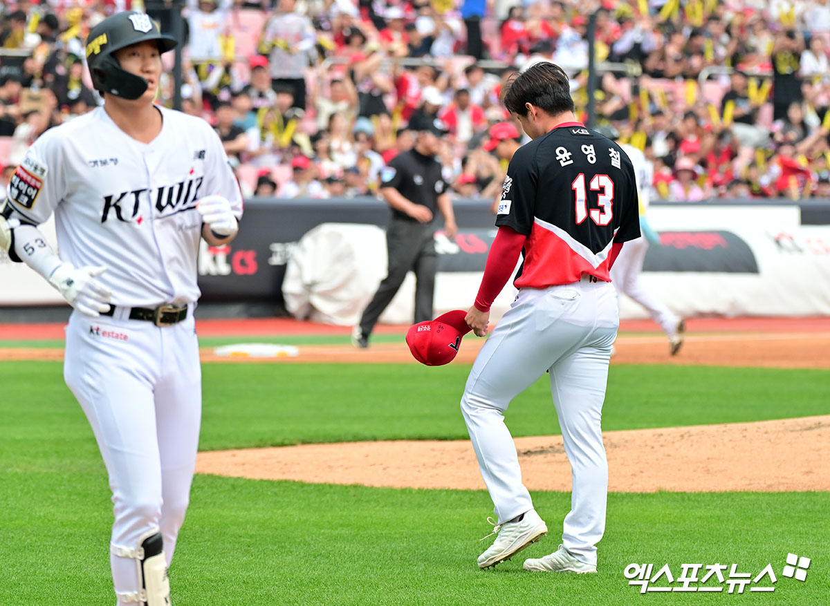 (엑스포츠뉴스 수원, 김한준 기자) 31일 오후 수원KT위즈파크에서 열린 '2025 신한 SOL Bank KBO리그' KIA 타이거즈와 KT 위즈의 경기, 2회말 수비를 마친 KIA 윤영철이 더그아웃으로 향하고 있다.