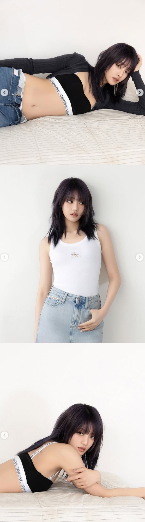 최근 민니는 청바지 이모티콘과 함께 자신의 화보 사진 여러 장을 게재했다.