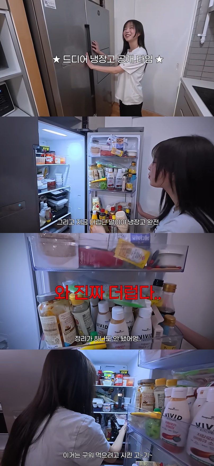 공개된 냉장고는 말 그대로 ‘혼돈’ 그 자체였다. 쯔양은 냉장고를 열더니 "별 거 없다. 지금 냉장고가 완전 더럽다. 정리가 하나도 안 됐다"고 말했고, 이를 본 제작진은 "진짜 더럽다"고 솔직하게 반응했다.