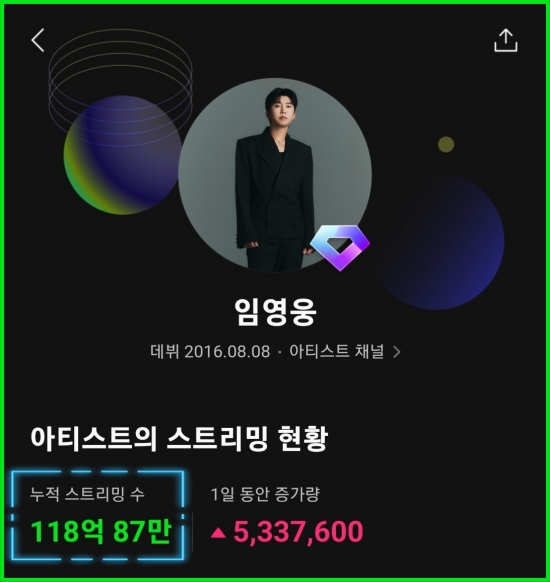 (엑스포츠뉴스 이정범 기자) 임영웅이 멜론 누적 스트리밍 118억 회를 돌파했다.