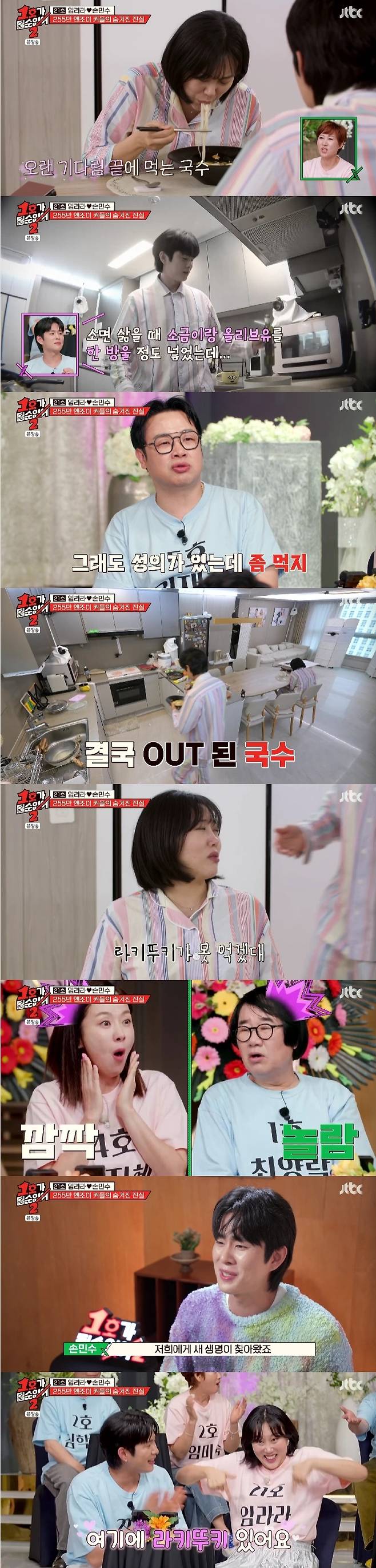 손민수는 배가 고프다는 임라라의 말에 벌떡 일어나 잔치국수를 하러 나섰다. 임라라는 배고프다고 재촉했고 손민수는 임라라가 원하는 국물 스타일로 열심히 요리했다.