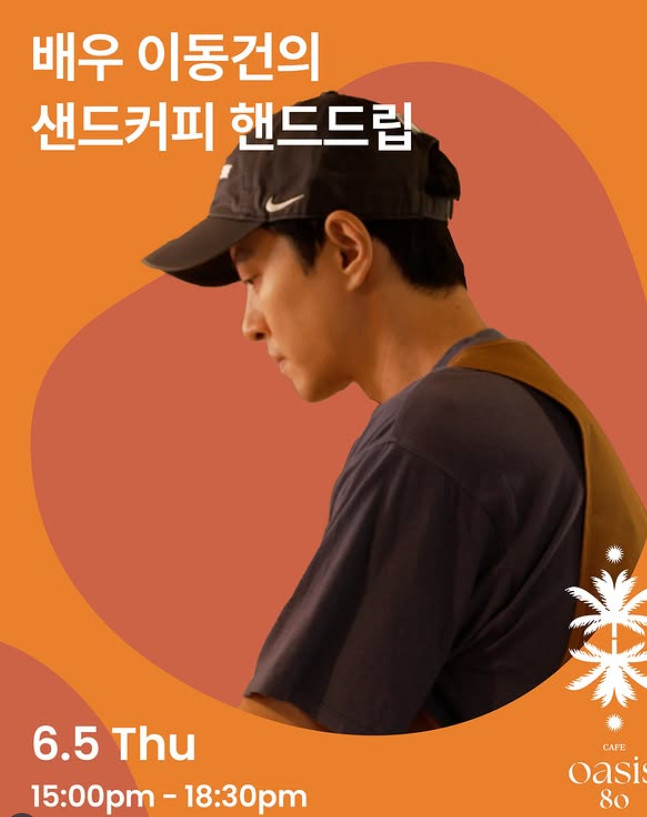 4일 이동건이 사장으로 있는 카페 오아시스 80은 공식 계정을 통해 "제주도라 방문하기 어려우셨던 분들께 이번 팝업을 기회로 성수동에서 인사드릴 수 있게 되었다"며 글로우 성수의 오픈 기념 이벤트로 이동건이 직접 샌드커페를 내려주는 시간도 마련했다고 알렸다.