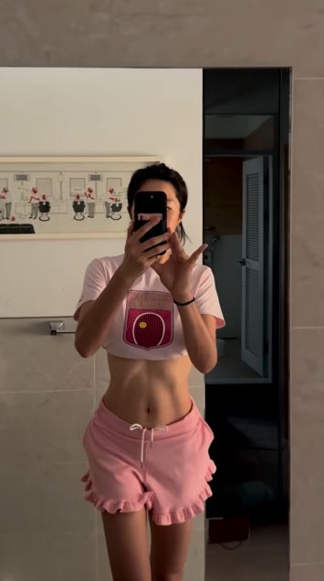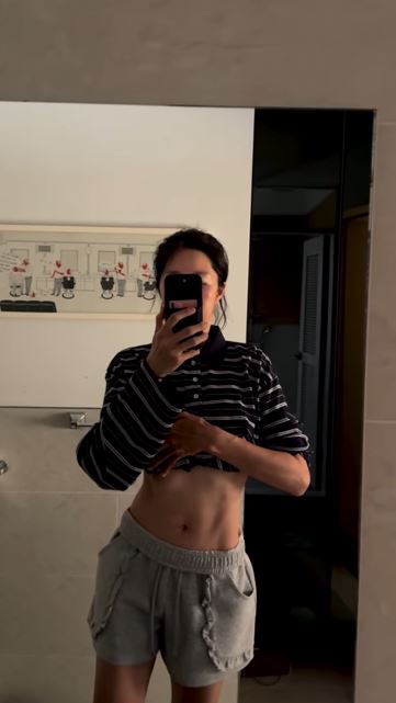 영상 속 전미라는 여러 날에 걸쳐 거울 앞에서 셀카를 찍은 모습. 복근 라인이 뚜렷하게 잡혀 시선을 사로잡는다.
