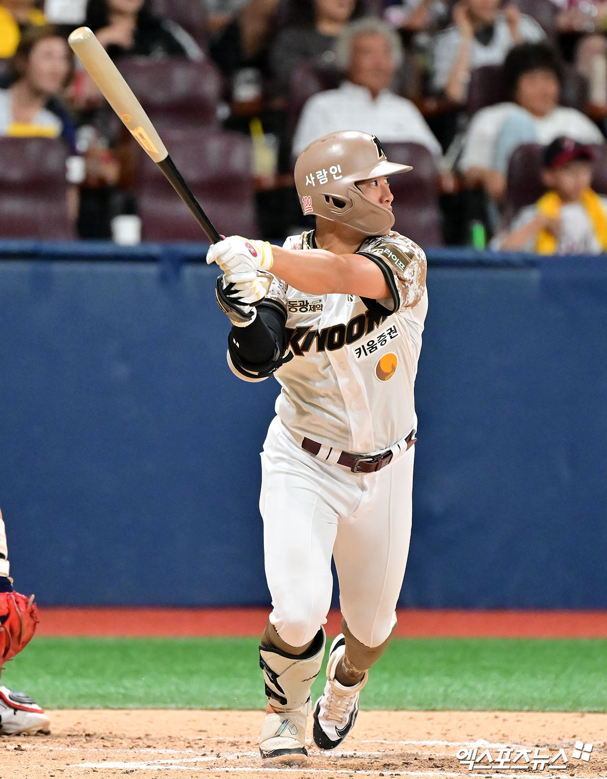 (엑스포츠뉴스 고척, 김한준 기자) 6일 오후 서울 구로구 고척스카이돔에서 열린 '2025 신한 SOL Bank KBO리그' LG 트윈스와 키움 히어로즈의 경기, 5회말 2사 키움 송성문이 2루타를 날리고 있다.