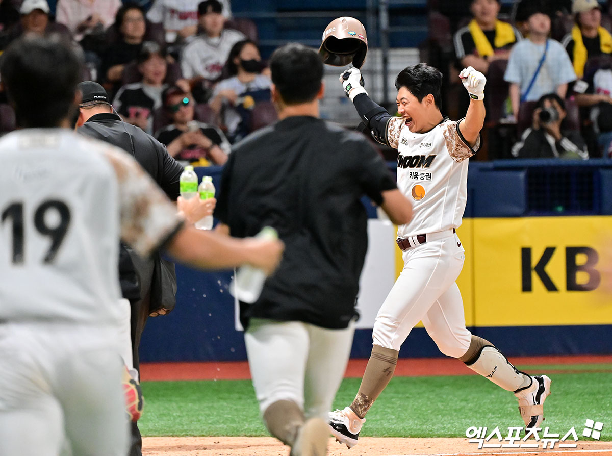 10회말 키움 송성문이 끝내기 홈런을 날린 후 기뻐하고 있다.