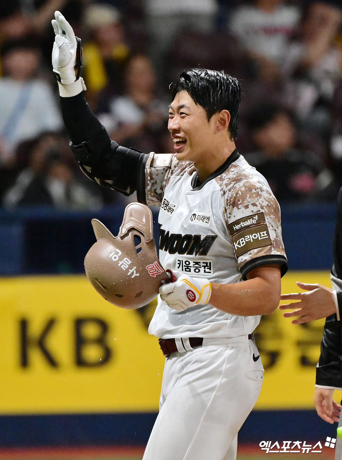 10회말 키움 송성문이 끝내기 홈런을 날린 후 기뻐하고 있다.