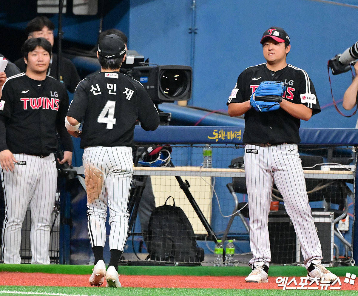 (엑스포츠뉴스 고척, 김한준 기자) 8일 오후 서울 구로구 고척스카이돔에서 열린 '2025 신한 SOL Bank KBO리그' LG 트윈스와 키움 히어로즈의 경기, 7회말 수비를 마친 LG 송승기가 더그아웃으로 향하고 있다.