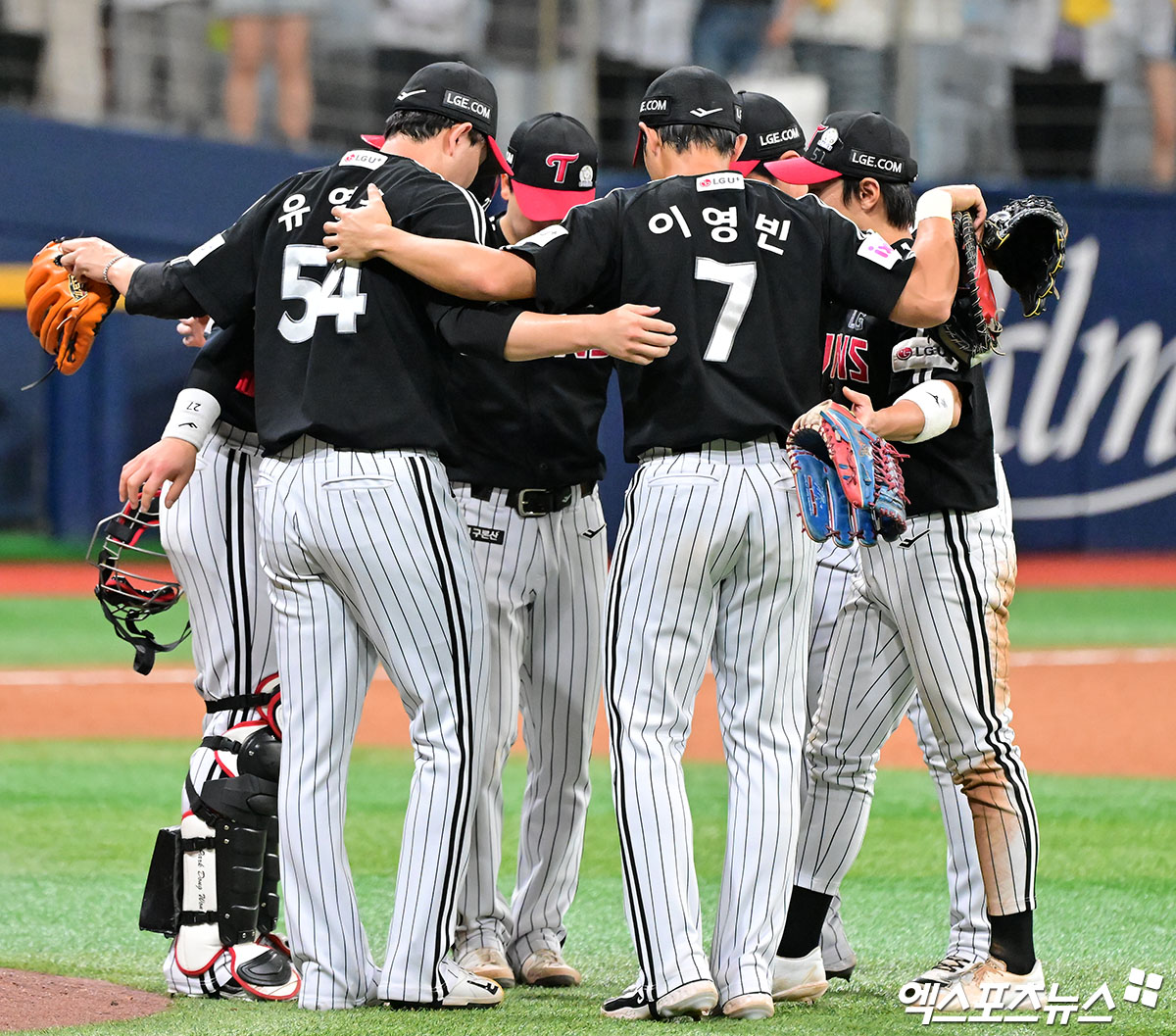 (엑스포츠뉴스 고척, 김한준 기자) 8일 오후 서울 구로구 고척스카이돔에서 열린 '2025 신한 SOL Bank KBO리그' LG 트윈스와 키움 히어로즈의 경기, LG가 송승기의 7이닝 완벽투와 김현수-문보경의 투런 홈런에 힙입어 키움에 7:2로 승리했다.