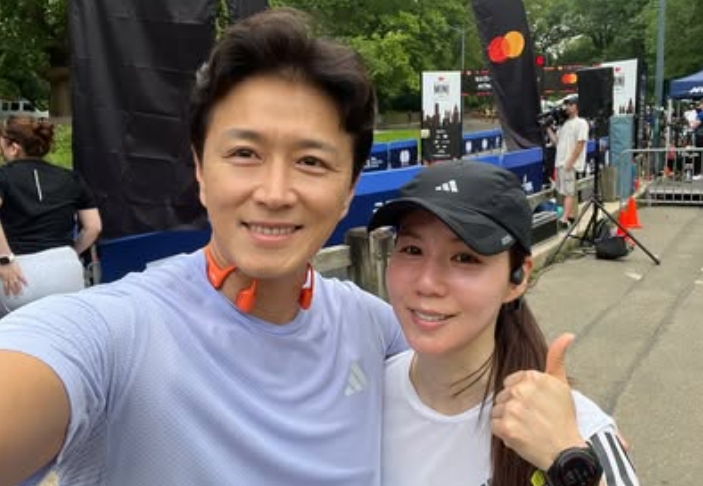 진태현은 "아내와 매일 아침 센트럴 파크에서 언제나처럼 열심히 조깅하면서 지내고 있다"며 조깅 마니아 면모를 드러냈다.