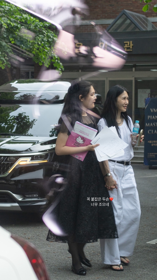 지난 1일 윤혜진은 "꼭 붙잡은 두 손. 너무 좋네"라는 글과 함께 딸 엄지온과 함께 찍은 사진을 업로드했다.