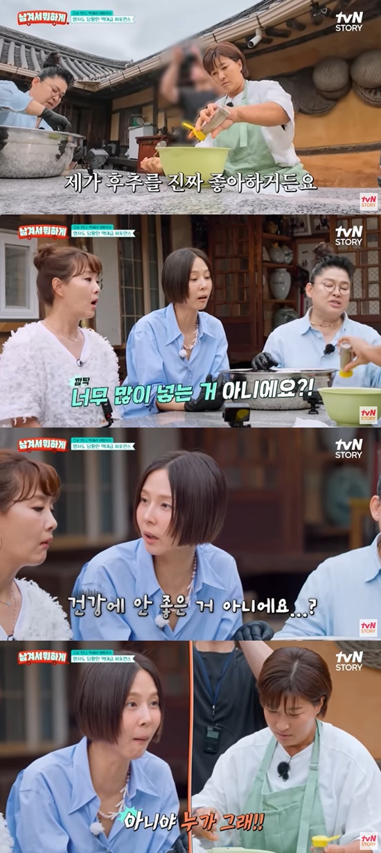 김나영은 "후추를 이렇게 많이 넣으면 건강에 안 좋은 거 아니냐"고 우려했는데, 박세리는 "아니야 누가 그래?"라고 반응했다