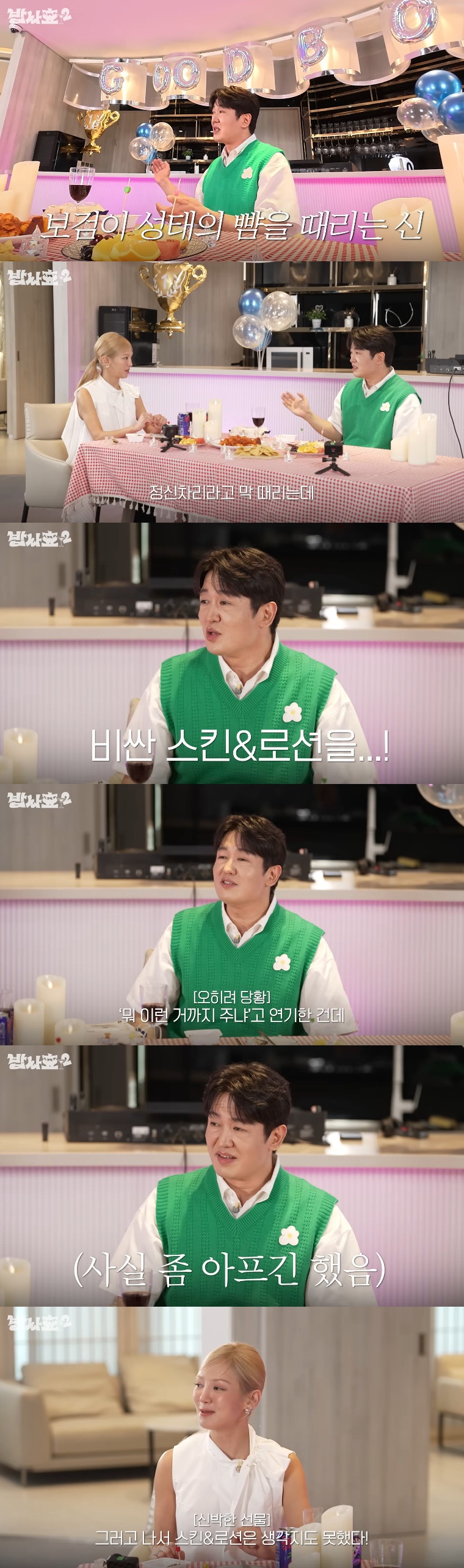 박보검은 연기임에도 불구하고 미안한 마음에 선물을 챙겨줬다고. 허성태는 "그게 미안해 가지고 또 비싼 스킨, 로션을 얼굴에 바르라고. 좀 비싼 거였다"면서 "'뭐 이런 거까지 주냐. 연기한 건데' 그러니까 아니라고, 미안하다고 (했다)"라며 박보검의 미담을 방출했다.
