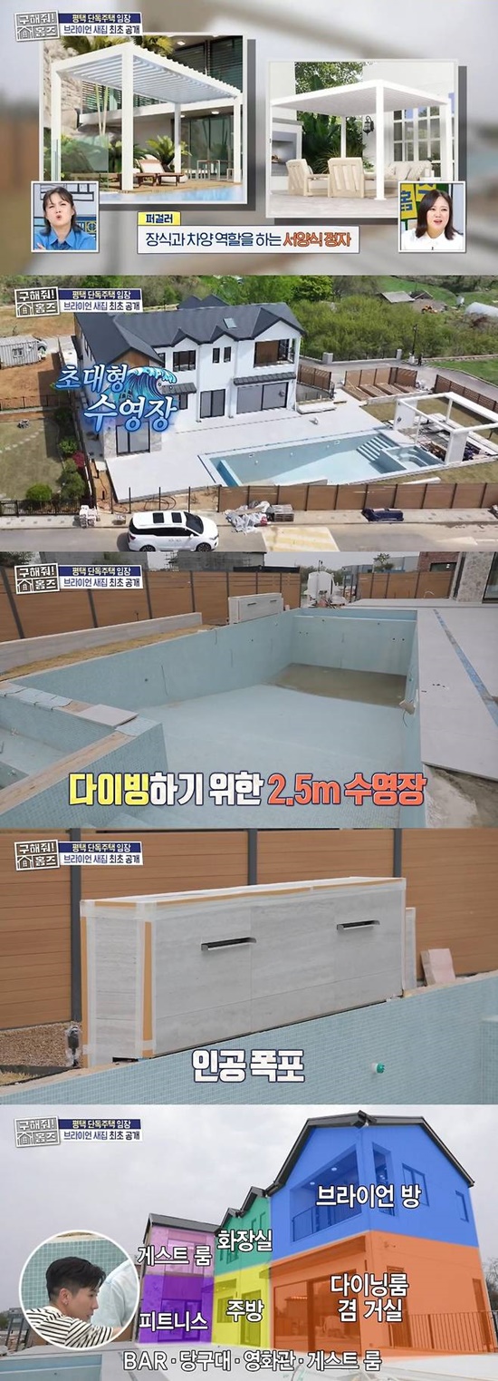 완공 전 공개된 브라이언의 집은 지하 1층부터 지상 2층까지 총 3층, 300평의 으리으리한 규모를 자랑했으며 미니 텃밭과 서양식 정자인 퍼걸러, 뒷마당을 넓게 차지한 초대형 수영장까지 자리하고 있어 놀라움을 자아냈다.