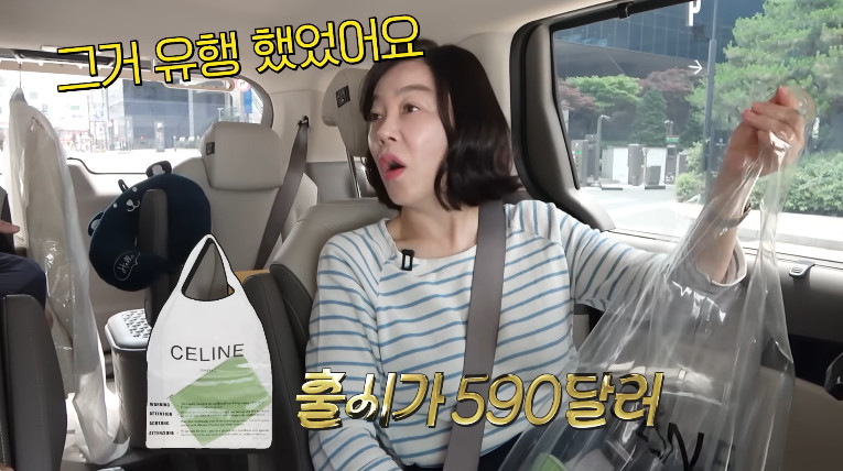 제작진은 최화정의 다리 위에 놓인 명품 브랜드 셀린느의 로고가 세겨진 투명 가방에 "이거는 셀린느냐. 파는 거냐 아니면 셀린느에서 뭐 사면 주는 거냐"고 물었다.