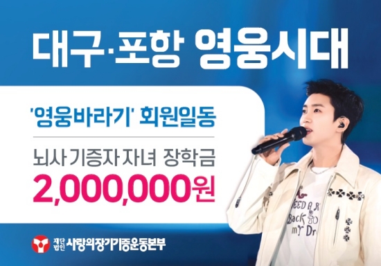 임영웅 팬클럽 '포항·대구 영웅바라기’, 장기 기증자 유가족 자녀에 장학금 200만 원 전달