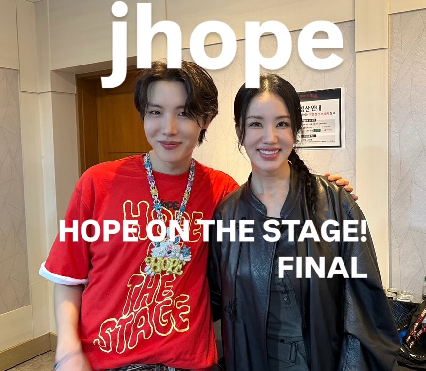 공개된 사진 속 엄정화는 이날 경기도 고양시 일산서구 고양종합운동장 주경기장에서 열린 제이홉의 월드투어 앙코르 콘서트 'HOPE ON THE STAGE FINAL'을 관람한 뒤 제이홉과 인증샷을 남기는 모습이다.