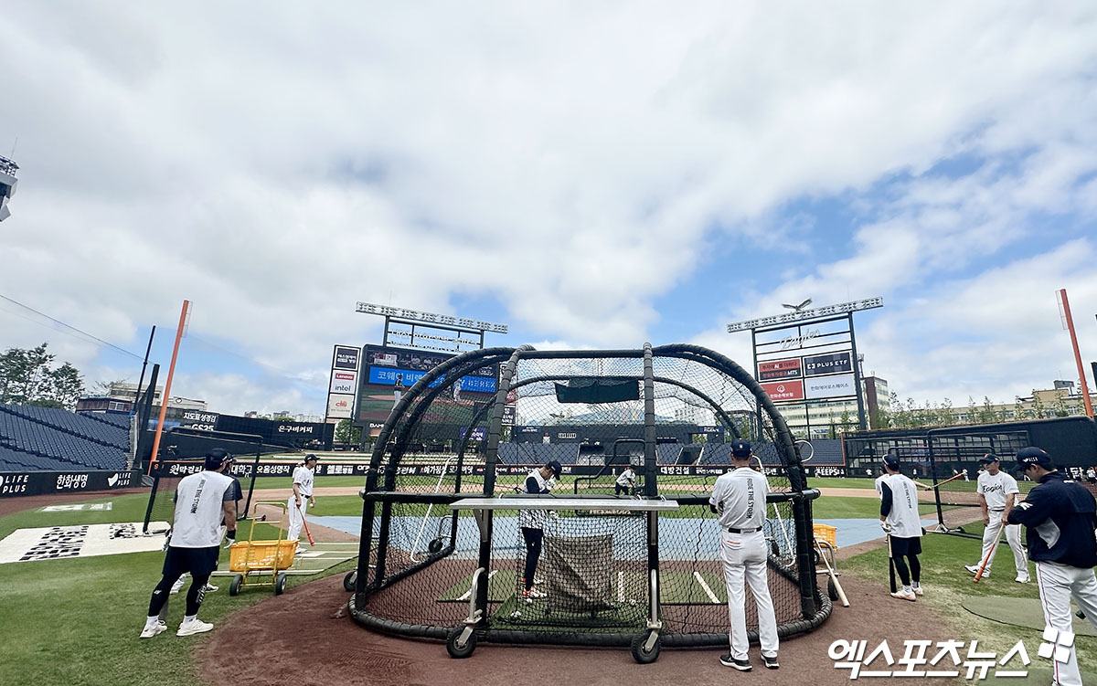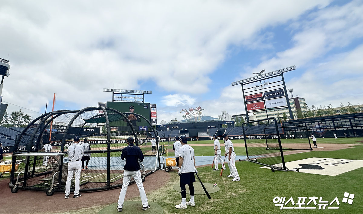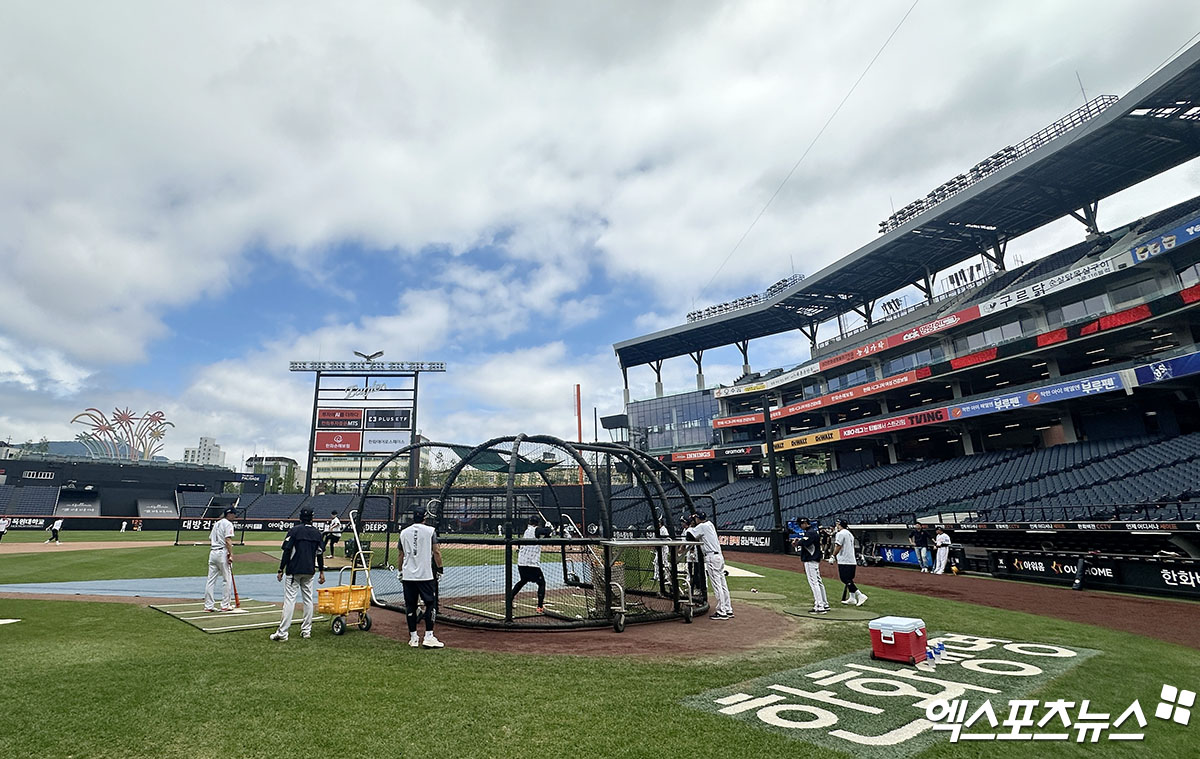 14일에도 대전에는 비 예보가 있어 주말 3연전 운영이 쉽지 않을 것으로 봤으나, 경기 개시 3시간 여 전인 현재 대전에 내려졌던 비 예보는 모두 사라졌다. 흐렸던 하늘도 구름이 걷히면서 선수들은 맑은 하늘 아래 훈련을 소화하고 있다.