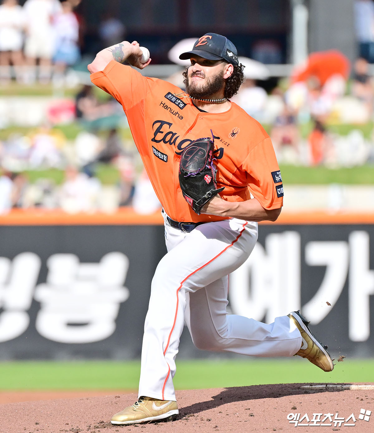(엑스포츠뉴스 대전, 김한준 기자) 14일 오후 대전 한화생명 볼파크에서 열린 '2025 신한 SOL Bank KBO리그' LG 트윈스와 한화 이글스의 경기, 1회초 한화 선발투수 폰세가 공을 힘차게 던지고 있다.