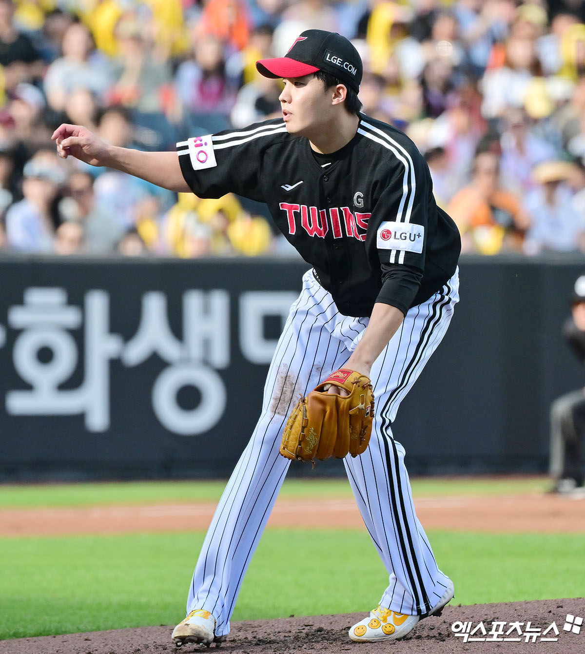(엑스포츠뉴스 대전, 김한준 기자) 14일 오후 대전 한화생명 볼파크에서 열린 '2025 신한 SOL Bank KBO리그' LG 트윈스와 한화 이글스의 경기, 1회말 LG 선발투수 임찬규가 공을 힘차게 던지고 있다.