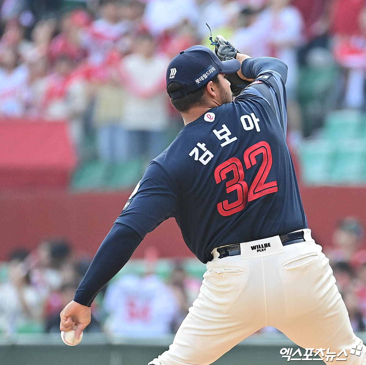 (엑스포츠뉴스 인천, 박지영 기자) 14일 오후 인천SSG랜더스필드에서 열린 '2025 신한 SOL Bank KBO리그' 롯데 자이언츠와 SSG 랜더스의 경기, 1회말 롯데 선발투수 감보아가 역투하고 있다.