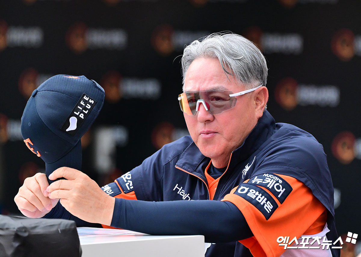 (엑스포츠뉴스 대전, 김한준 기자) 15일 오후 대전 한화생명 볼파크에서 열린 '2025 신한 SOL Bank KBO리그' LG 트윈스와 한화 이글스의 경기, 한화 김경문 감독이 그라운드를 바라보고 있다.
