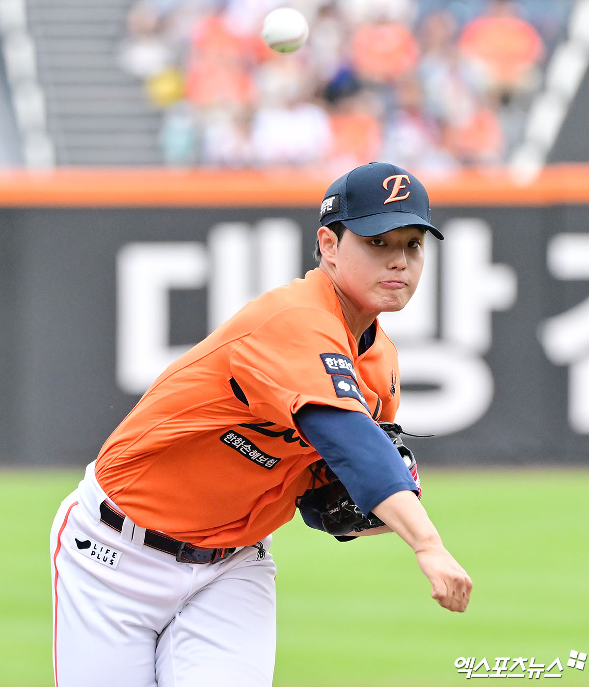 (엑스포츠뉴스 대전, 김한준 기자) 15일 오후 대전 한화생명 볼파크에서 열린 '2025 신한 SOL Bank KBO리그' LG 트윈스와 한화 이글스의 경기, 1회초 한화 선발투수 문동주가 공을 힘차게 던지고 있다.
