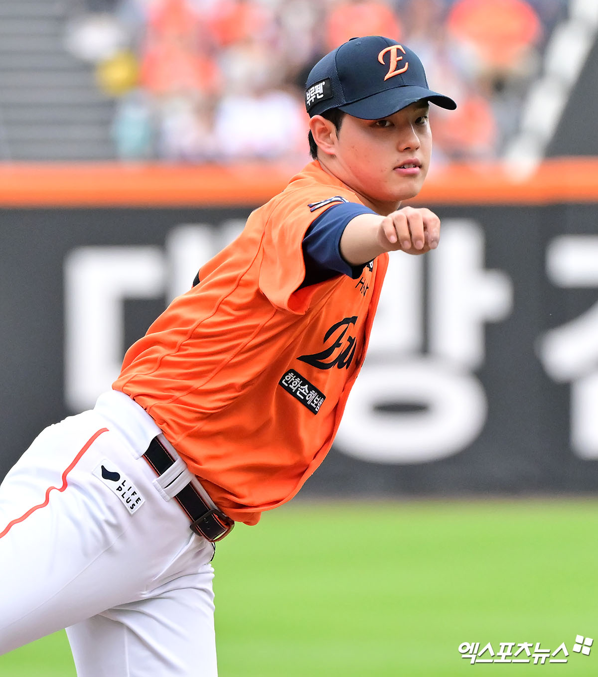 (엑스포츠뉴스 대전, 김한준 기자) 15일 오후 대전 한화생명 볼파크에서 열린 '2025 신한 SOL Bank KBO리그' LG 트윈스와 한화 이글스의 경기, 1회초 한화 선발투수 문동주가 공을 힘차게 던지고 있다.