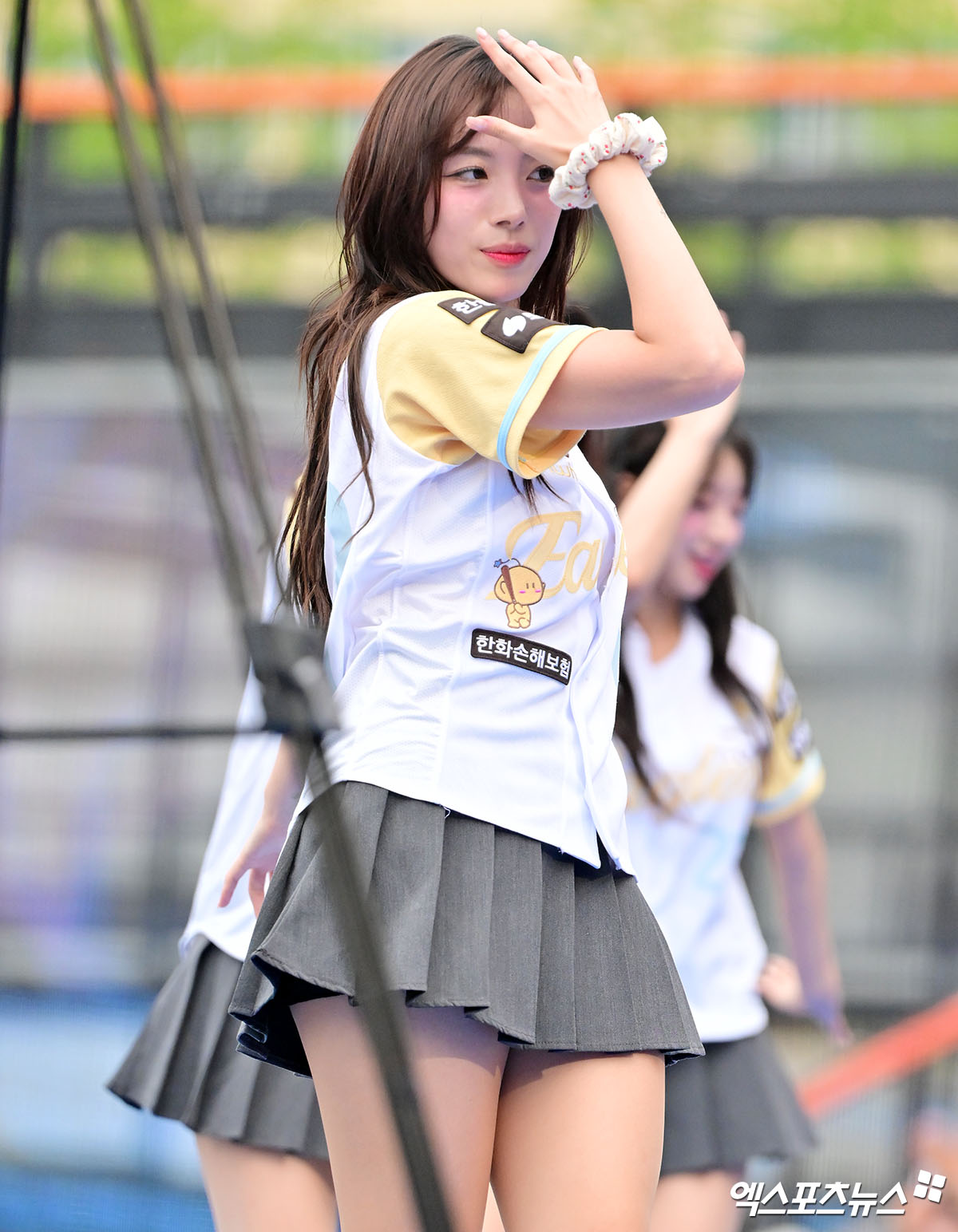 (엑스포츠뉴스 대전, 김한준 기자) 15일 오후 대전 한화생명 볼파크에서 열린 '2025 신한 SOL Bank KBO리그' LG 트윈스와 한화 이글스의 경기, 하지원 치어리더가 멋진 공연을 선보이고 있다.