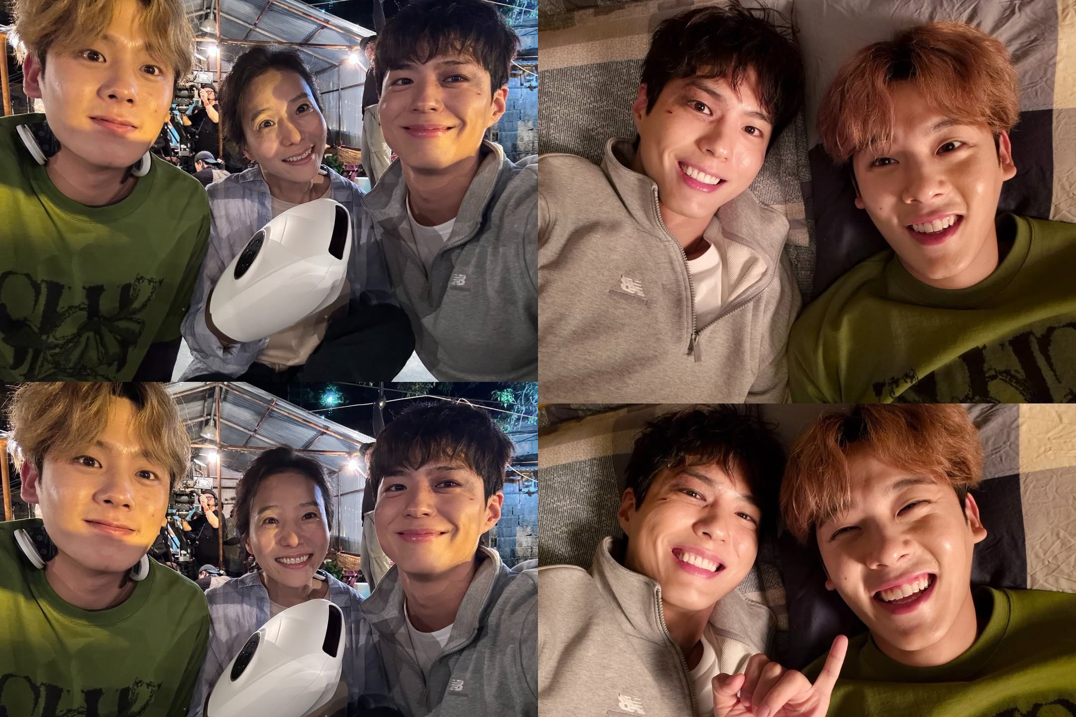 카메라를 향해 환하게 미소 지으며 현실 케미를 뽐내는 세 사람의 모습이 훈훈함을 자아내며, 특히 박보검과 이정하의 투샷은 닮은 듯 다른 잇몸 웃음으로 귀여움을 더한다.