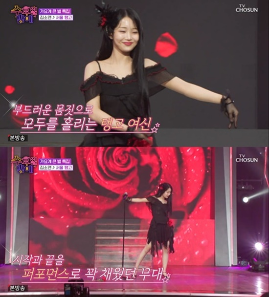 김소연이 준비한 무대는 방실이의 '서울 탱고'였다. 탱고 퍼포먼스를 준비한 김소연은 "오늘 (태진아) 선생님께서 퍼포먼스를 보신다고 하니까 잘 봐주세요"라며 필살 애교를 선보이기도 했다.