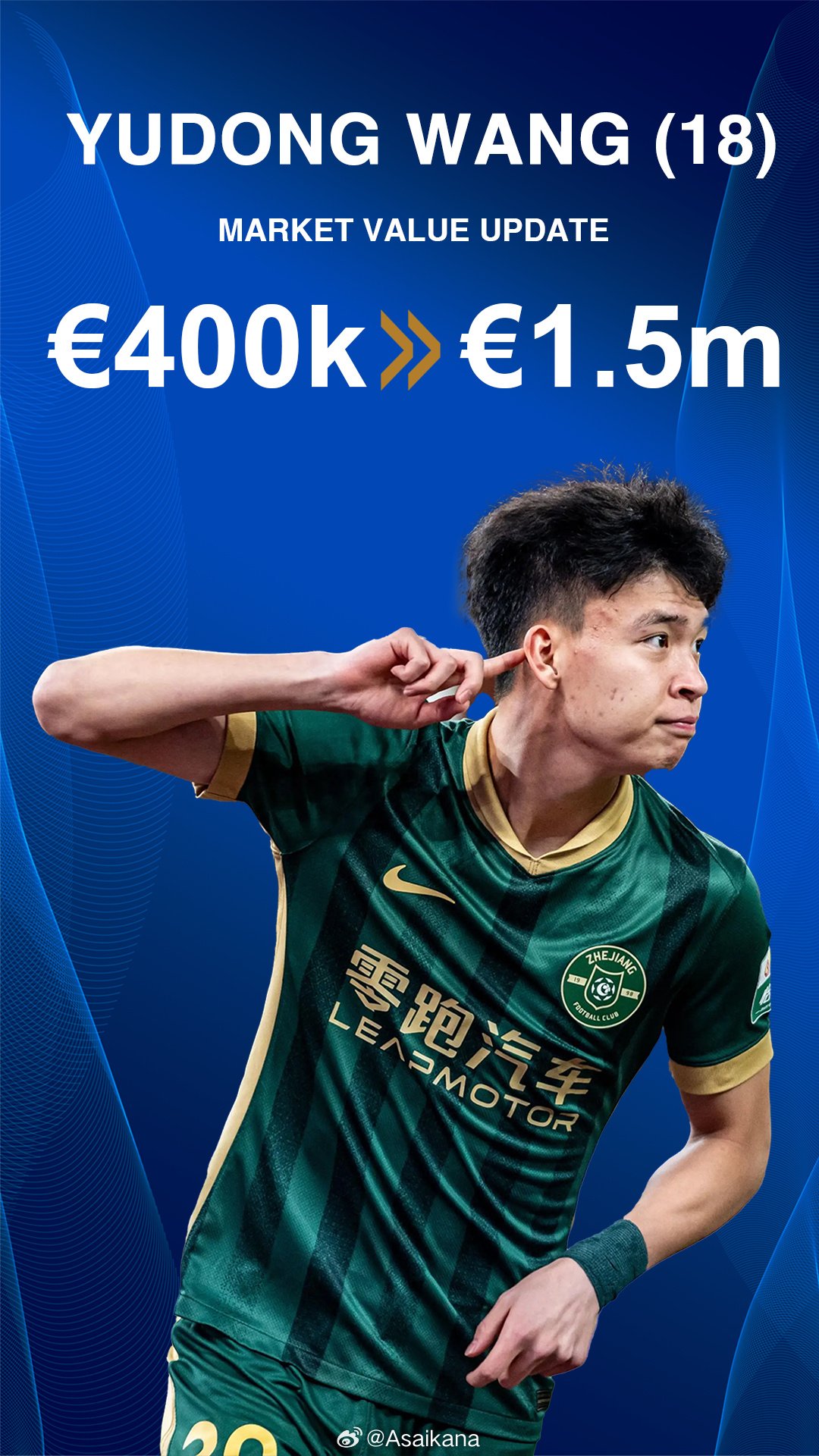 '핫팟 풋볼'은 "왕위동이 모든 중국 축구 선수 중에서 몸값 2위이며 2006년생 전 세계 축구 선수 중에서는 126위에 올랐다. 아시아에서는 4위다"라고 소개했다.
